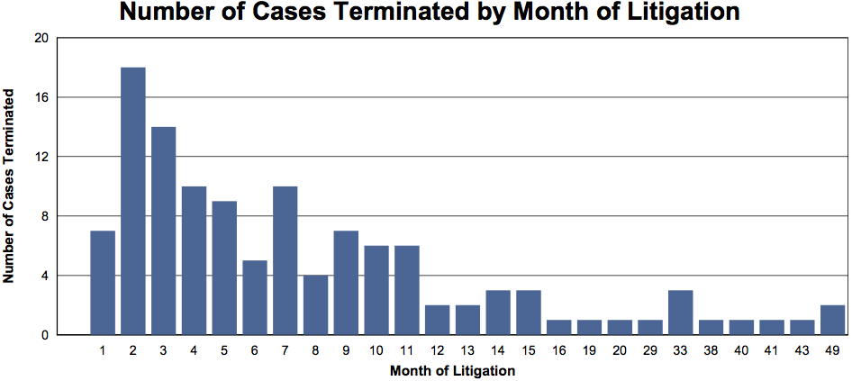 One of the most important factors when considering whether and where to file a case is the time to termination. Our nationwide time to termination report gives you a comprehensive overview, broken down by court and nature of suit. The report is also available for individual districts and individual natures of suit. The nationwide report includes: